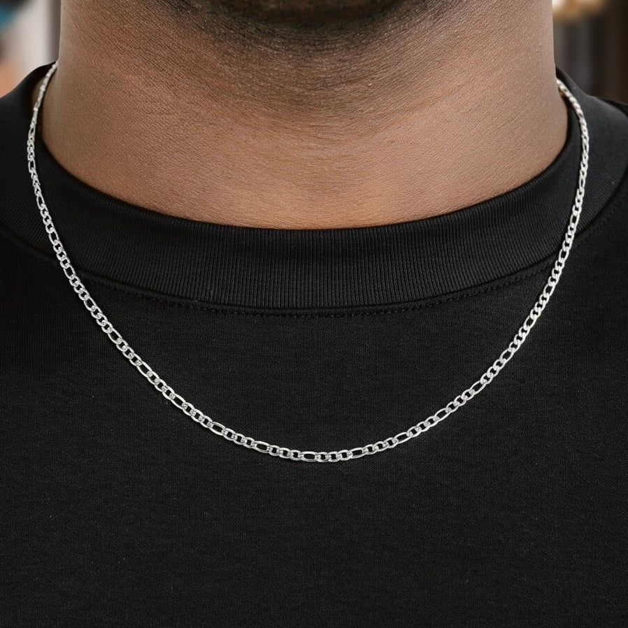 3mm Figaro chain, crafted from high-quality, hypoallergenic stainless steel. Its five-layer plated finish ensures long-lasting shine. Perfect for everyday wear or special occasions.