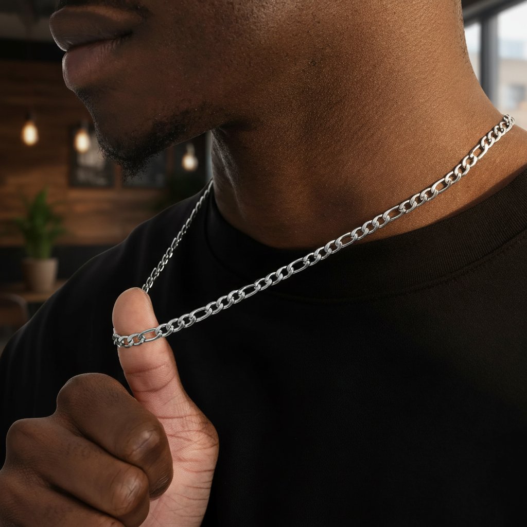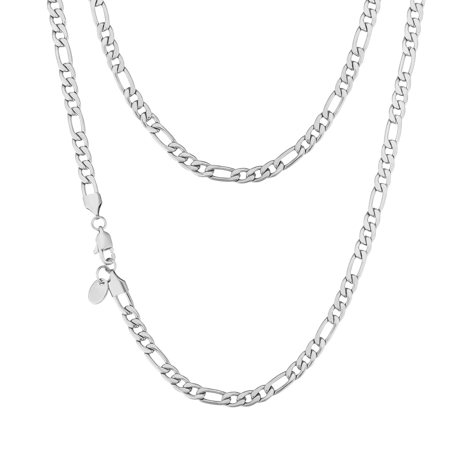 5mm Figaro chain, crafted from high-quality, hypoallergenic stainless steel. Its five-layer plated finish ensures long-lasting shine. Perfect for everyday wear or special occasions.