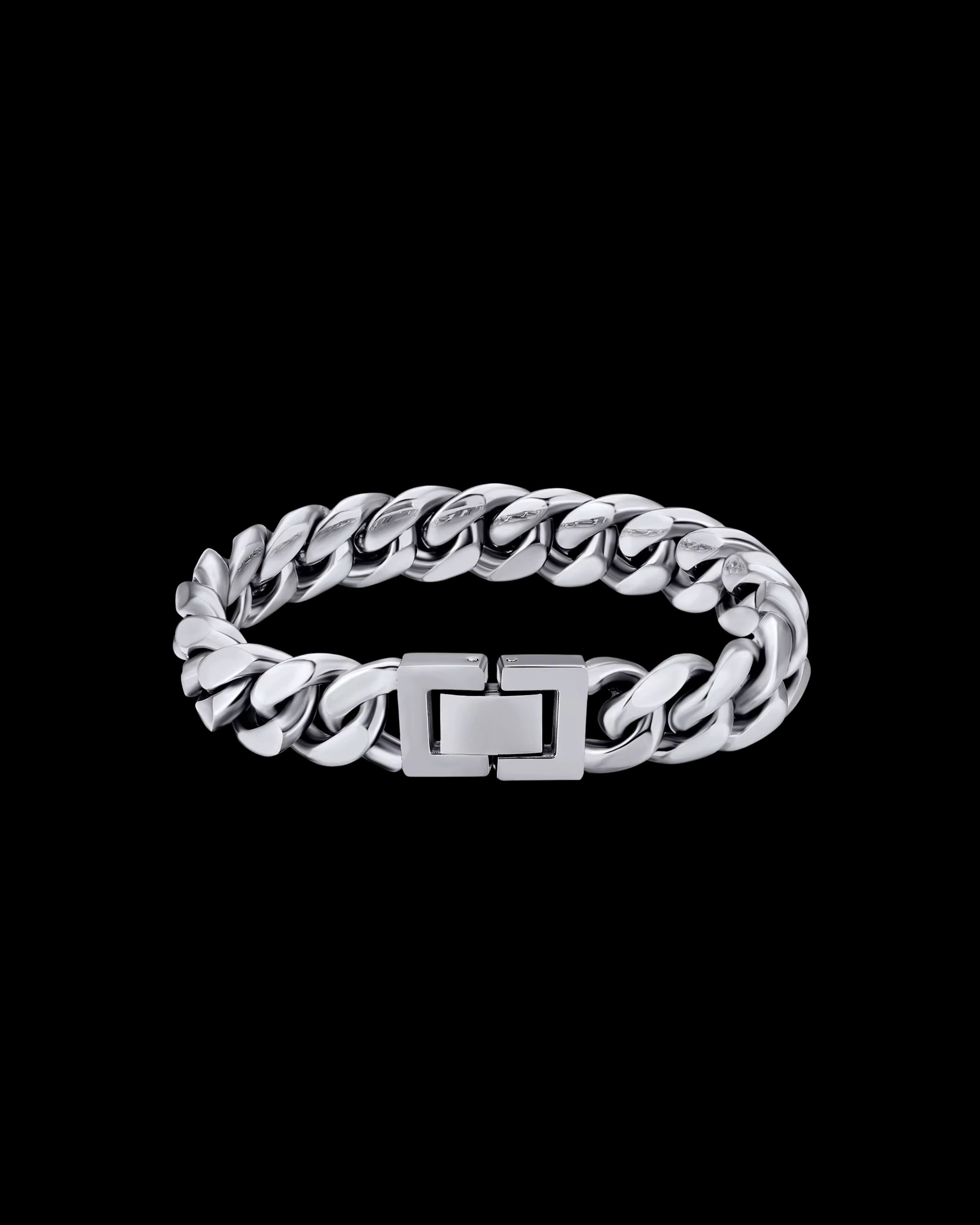 Elevate your look with this 12mm Miami Cuban Link Bracelet, crafted from premium stainless steel for a sleek and modern finish. Its polished silver tone delivers a clean, timeless style that pairs effortlessly with any outfit.