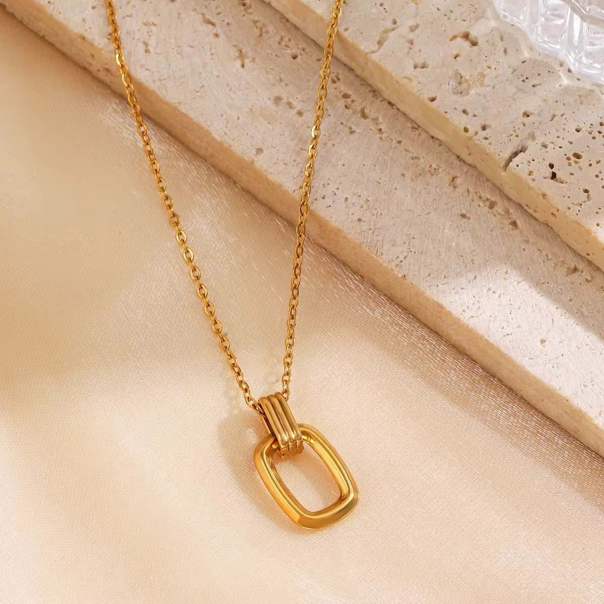 Golden Aura Necklace, a refined minimalist piece designed to bring effortless elegance to any outfit. Its modern oval-shaped pendant reflects light beautifully, creating a subtle yet sophisticated look.